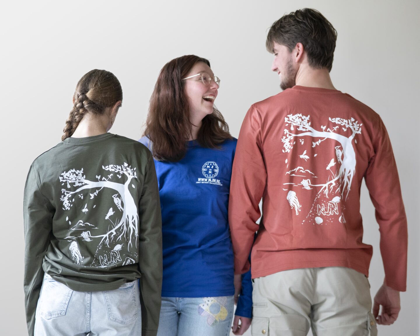 De oude NJN-merch bestaat uit een oplage van truien en T-shirts met hetzelfde design op de voor- of achterkant. Kijk goed naar welke maten nog beschikbaar zijn! Met drie kleuren voor de shirts en vier voor de truien en maten voor groot en klein is dit de perfecte merch voor alle leden. Kies een mooi kleurtje uit en ga er lekker mee op kamp!